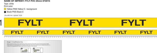 Tape med tekst gul "FYLT"