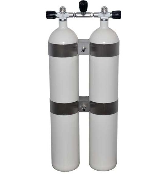 OMS dobbeltsett 2 x 8,5 L 230 Bar , concave. Bred avstand 171 mm ISO. 2 stk hvite 8,5 ltr med 232 bar. Høyglans spennbånd.