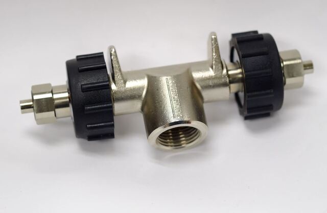 Interspiro t-stykke for å splitte luft i for eksempel DP1 systemet til 2 samtidige dykkere.