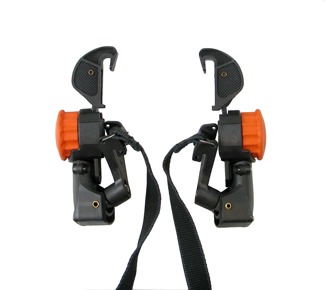 Interspiro hjelmadapter for enkel montering av maske til hjelm. Adapterne festes til masken ved sammenkoblingen av maskehalvdelene. Maskestropper henger ferdig på adapterne. Disse adapterne er justerbare.