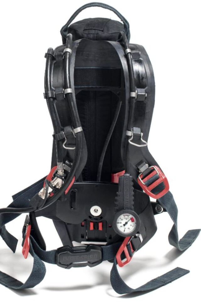 Incruve bæremeis , en av verdens mest rengjøringsvennlige røykdykkermeiser. Denne meisen er for 1 flaske , har ekstra luftuttak med y-stykke. I y-stykket er det 1 hanndel og 1 hunndel og koblingen er euro.
