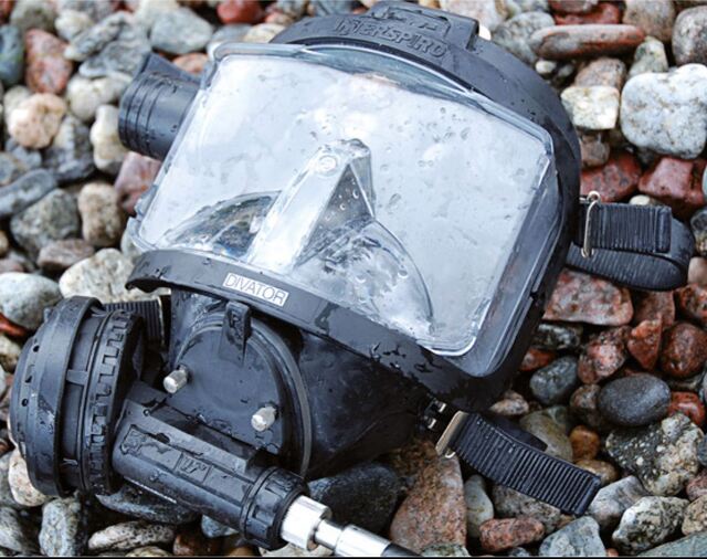 Interspiro velkjente helmaske med sikkerhetstrykk . Inklusiv pusteventil.Svart.Naturgummi.Friskluftsluke.