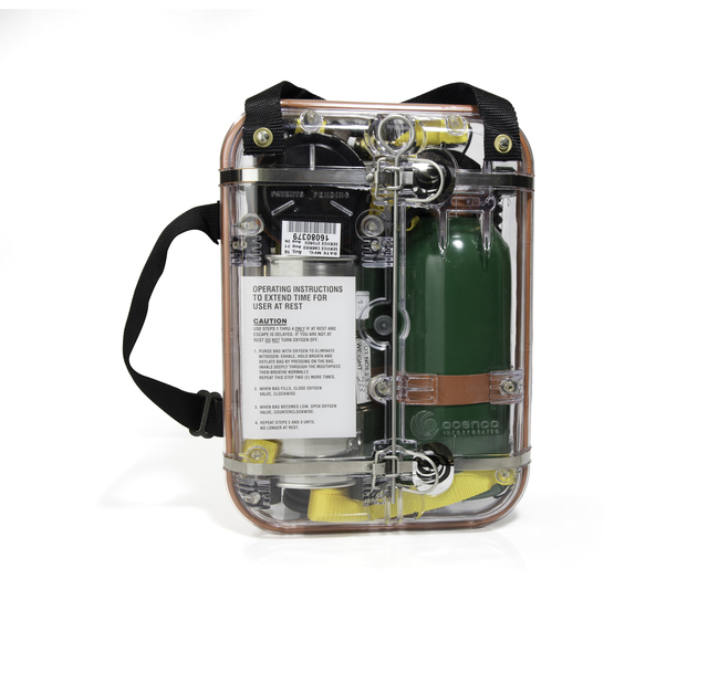 Enheten er behovskontrollert og gri brukeren mer enn 90 minutter oksygen under en nødutgang og opptil 8 timer i hvilesituasjon. Designet er kompakt, lett og veldig enkelt å betjene, noe som gjør det mulig å ta på og bli fullt funksjonell innen 15 sekunder. Luftinnholdet angitt på manometeret er alltid synlig for inspeksjon gjennom det klare ,manipuleringssikre forseglede lokket.