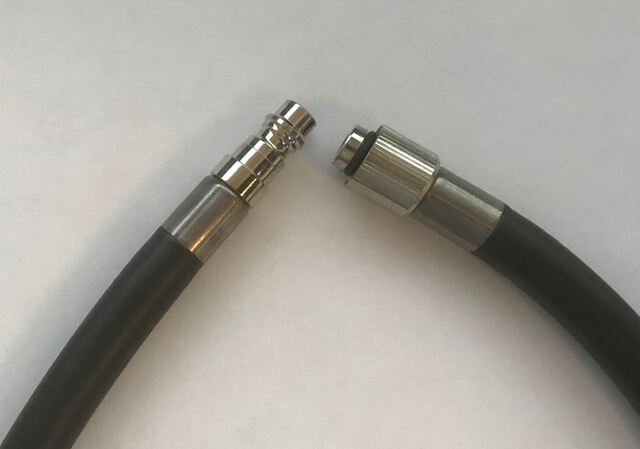 Interspiro mellomtrykkslange med hurtigkobling hann euro.Lengde på slangen er 76 cm. Brukes for eksempel mellom hurtigkobling hunn og maske.