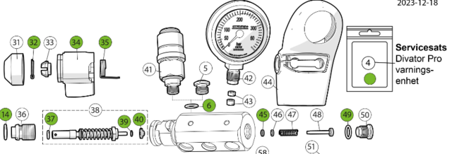 Interspiro servicekit for varslingen på Divator Pro. Kittet inneholder alle deler du trenger til en full 10 års service.