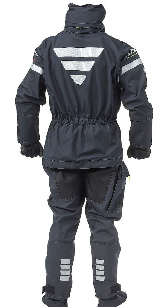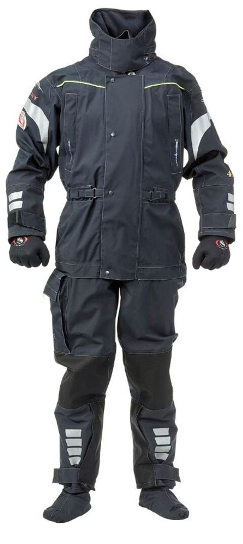 Urusit EASY dress ,som navnet antyder er utsuit easu ekstremt enkel å kle av og bruke. Glidelåsen foran åpnes ved nakketetningen og sikrer enkel og rask pendling. Den tørre glidelåsen er dekket av en beskyttende klaff med trykknapper. Den høye kragen med fleece fôr er avtagbar når det ikke er nødvendig. En beskyttelseshette finnes i kragen. Takket være de integrerte sokkene kan du velge fottøyet som passer dine behov på best mulig måte. Designet minner mer om vanlige klær enn en tørr drakt. Passformen er også optimal for kvinner da den kan justeres i midjen. Vanntette brystlommer er standard. Lårlommen er utstyrt med festemidler for feste av en Squeeze Lock- kniv (selve kniven er valgfri) Materialet er dampgjennomtrengelig og vanntett 4-Tex. Sømstruktur er patentert Flat Seam teknologi. Takket være dette kan flere lag unngås. Fremtredende refleksbånd sikrer synlighet. Håndledd og halsforseglingene er laget av elastisk neoprene, noe som gjør dressingen lettere og gir den varmeisolasjonen på håndledd og nakke som behøves. Det finnes en beskyttende hette i kragen. Separate neoprenehansker og hetter gir ekstra termisk beskyttelse. Forsterkninger på kne og rygg.