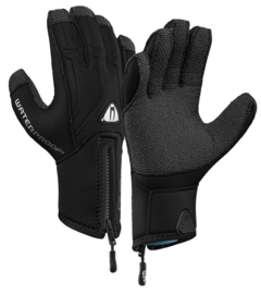 Waterproof hanske G2 5 fingre 5 mm Kevlar hanske. Neopren hanske med Kevlar forsterkning i håndflaten for ekstra slitestyrke og holdbarhet. Det gode grepet gjør det enklere å få på hanske nummer to. For økt fleksibilitet er materialet i øvre del av hansken laget med superelastisk neopren og hansken er sydd ergonomisk for ekstra komfort. For enkel påkledning har den en ekstra lang glidelås. Kan brukes året rundt.